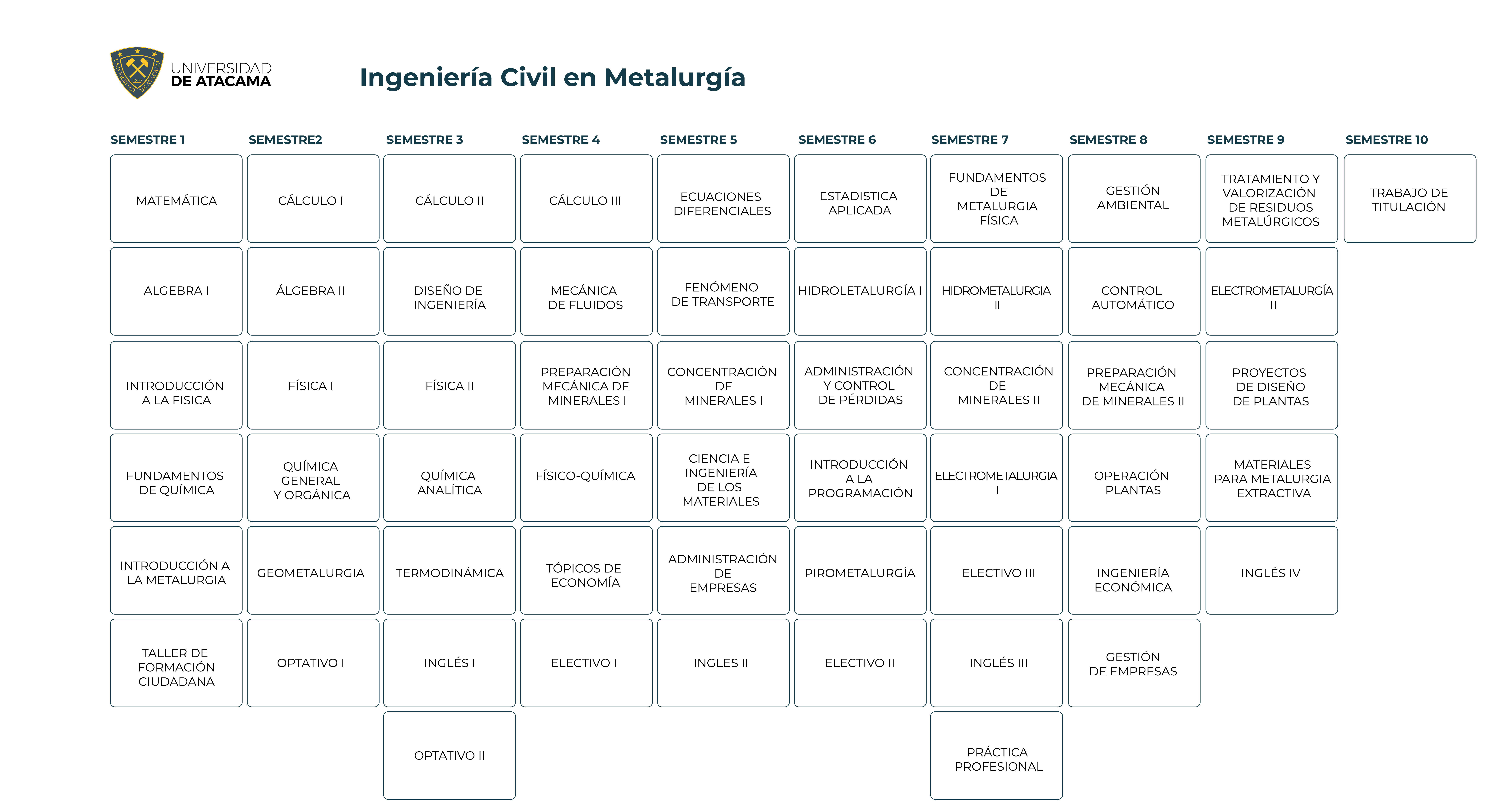 El plan de estudios entrega competencias genéricas y disciplinares que permiten un desempeño en las áreas de Producción y Gestión de proyectos metalúrgicos. Entre sus capacidades destacan: